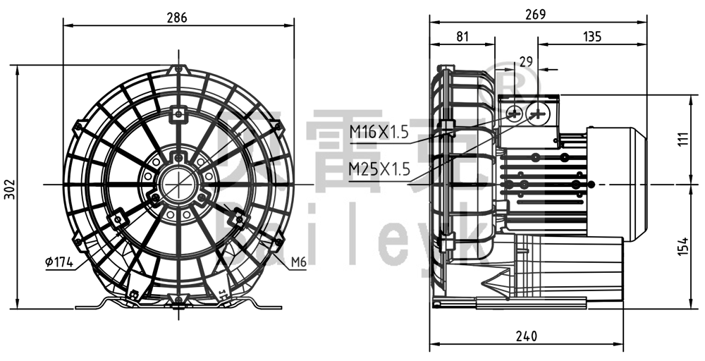 最大風(fēng)量:145m3/h 最大正壓:120mbar 最大負壓:120mbar 防護等級:IP55 噪音:63db 重量:15Kg