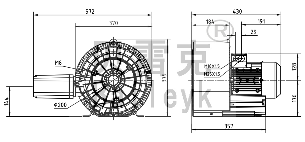 最大風(fēng)量:230m3/h 最大正壓:360mbar 最大負(fù)壓:290mbar 防護(hù)等級(jí):IP55 噪音:72db 重量:35Kg