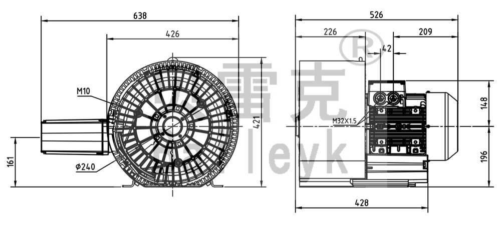 最大風量:320m3/h 最大正壓:380mbar 最大負壓:360mbar 防護等級:IP55 噪音:73db 重量:56Kg